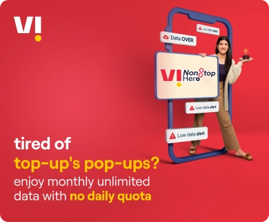 If you are working remotely, catching up on your favourite shows, gaming on the go, or simply staying connected with friends and family, your mobile data is your lifeline. At Vi, we understand just how important it is to stay connected without constantly worrying about data limits. That’s exactly why we’ve designed our NonStop Hero Prepaid Packs, so that you can enjoy unlimited 5G and 4G data and uninterrupted access, no matter what your day looks like.
