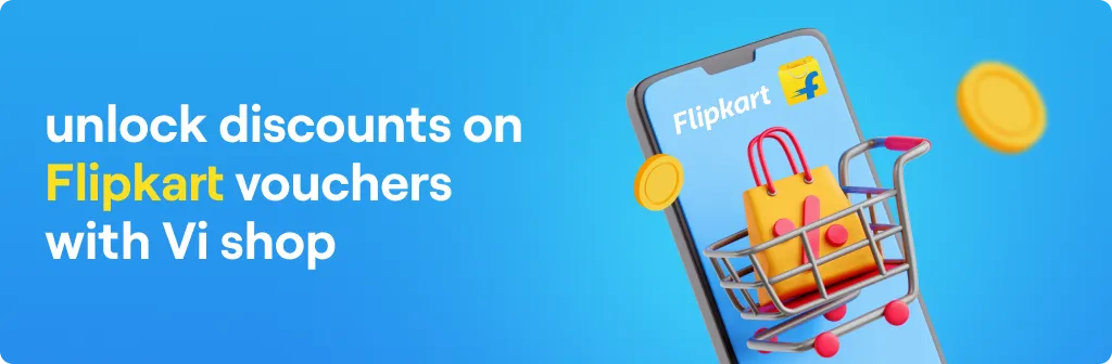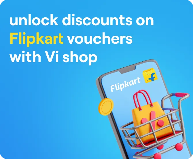 Now with Vi unlock a world of savings and shopping convenience. Vi offers a discount on Flipkart Vouchers on the Vi Shop. The Flipkart vouchers are digital gift cards with a specific value, redeemable for a variety of products while shopping on Flipkart.