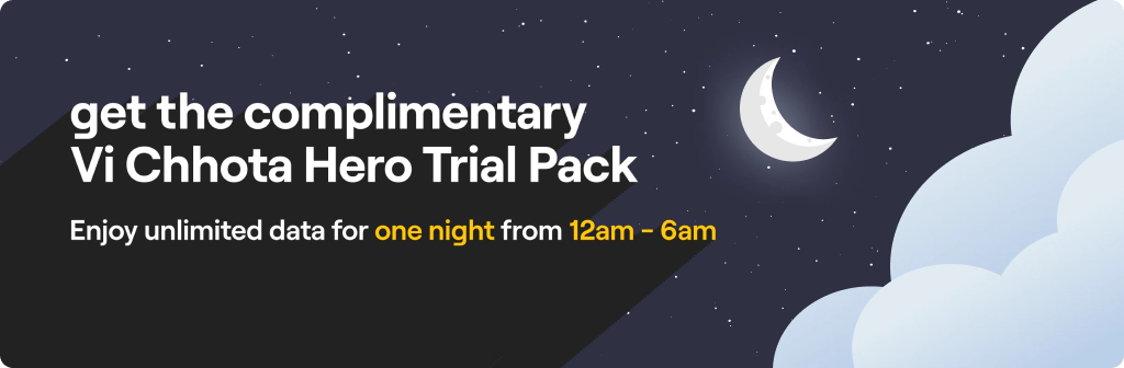 Users can now get the complimentary Vi Chhota Hero Recharge pack with unlimited night data from 12 am to 6 am (for one night) on the Vi App!