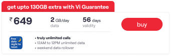Vi users can avail of the data delight benefit with all Vi Hero unlimited packs. The Vi Hero Unlimited packs include several data advantages along with data delight. Users get free data from 12 am to 6 am everyday with the binge-all-night offer. They can also benefit from the weekend data rollover offer included with Hero Unlimited plans and save unused data from the weekdays (Mon-Fri) for the weekends.